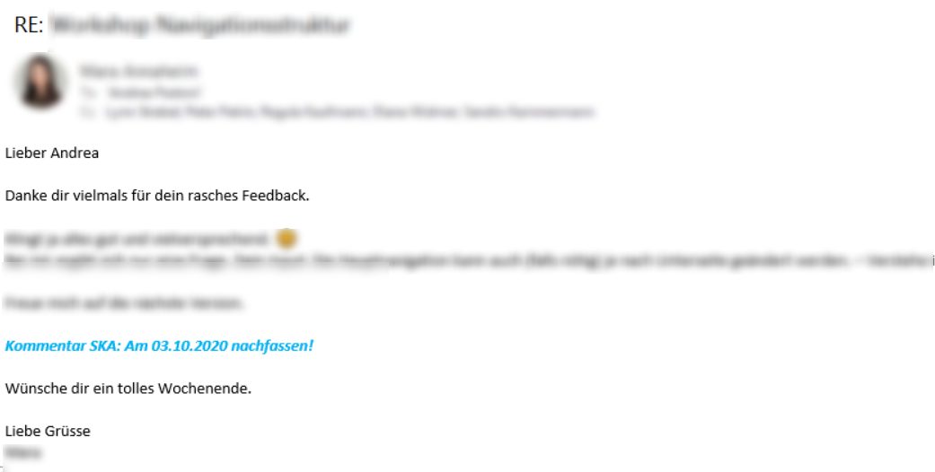 Du kannst das E-Mail nun nach deinem Wunsch bearbeiten. Bitte verwende eine kräftige Farbe, ansonsten fällt dein Kommentar nicht auf.