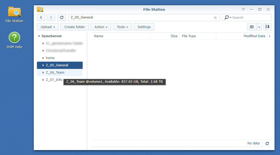 File Station .Click on the share on the left side. Each share has a different meaning.