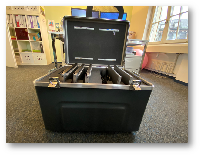 Der Notebook Koffer enthält fünf Notebooks und einen Hotspot.