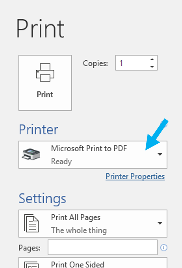 Um aus einem Microsoft Word , Microsoft Excel , Microsoft PowerPoint -Dokument oder einer Homepage ein PDF zu erstellen, so kann einfach der Drucker Microsoft Print to PDF verwendet werden.