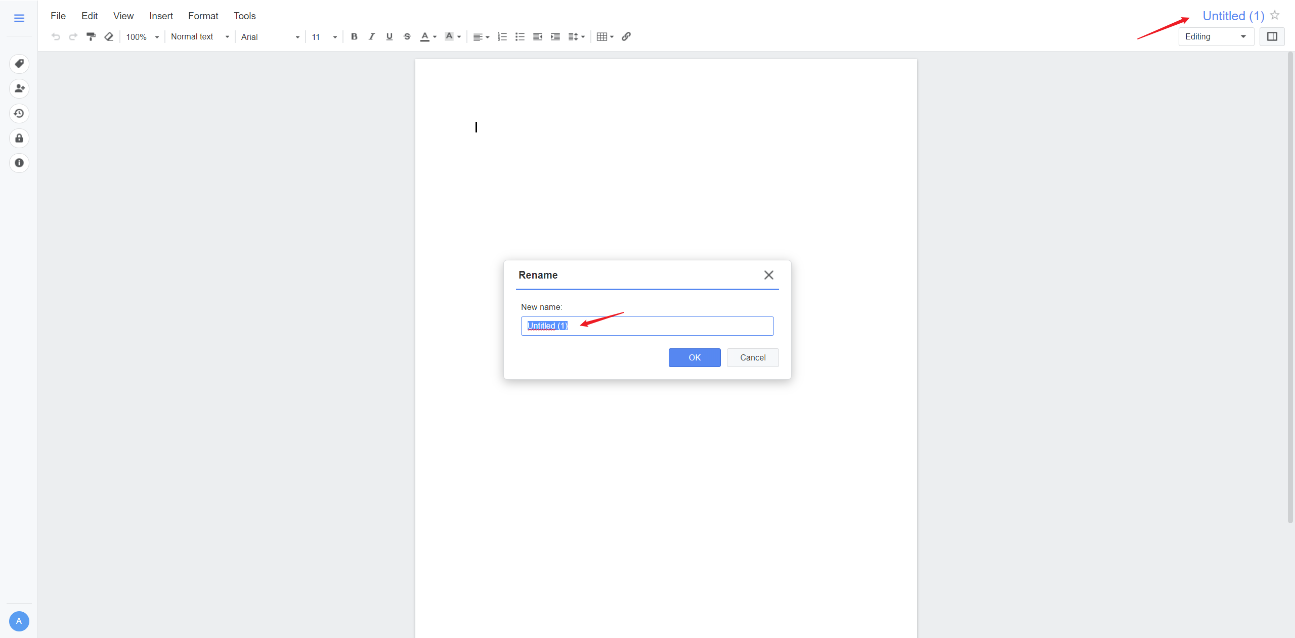 Give the new document a name in the upper right corner and get started. The document will be saved automatically!