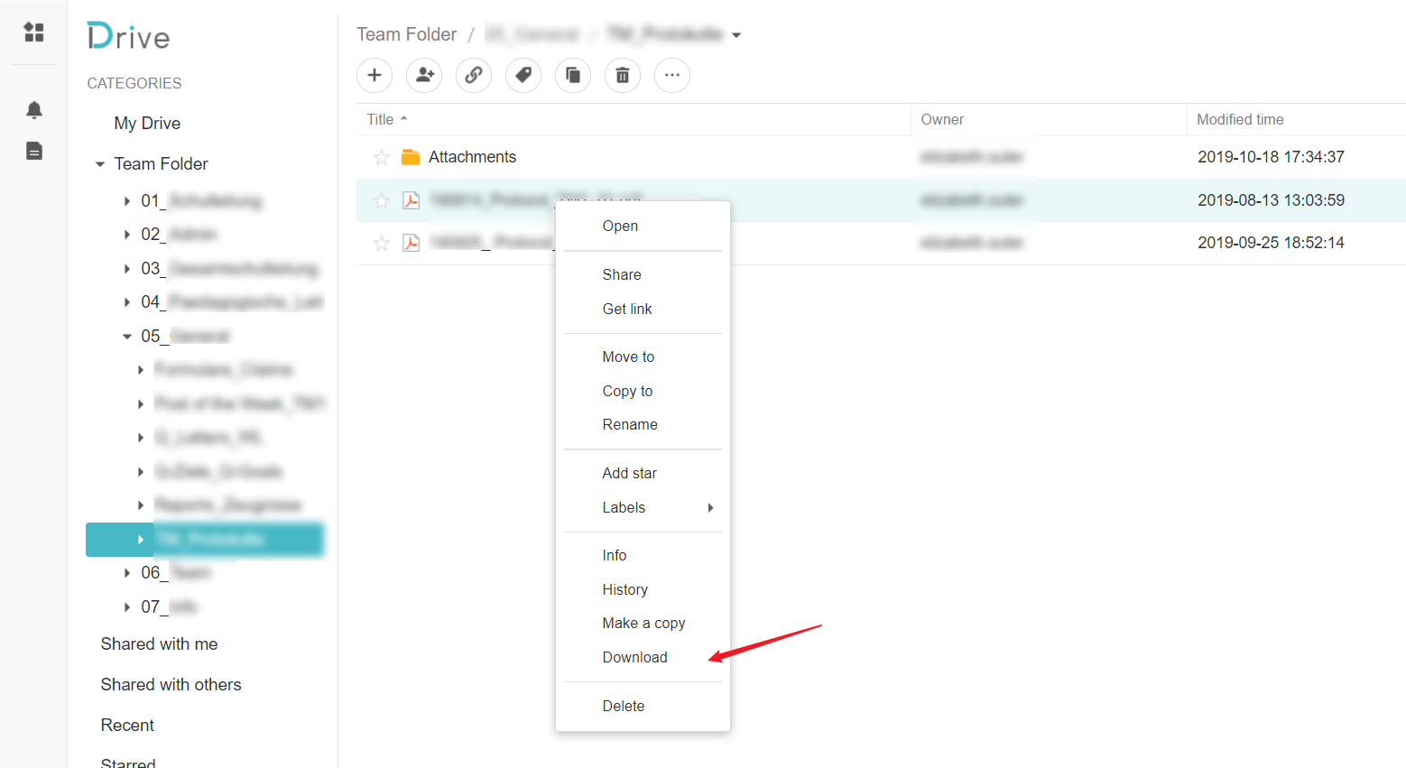 Right click on the document and then on Download.
